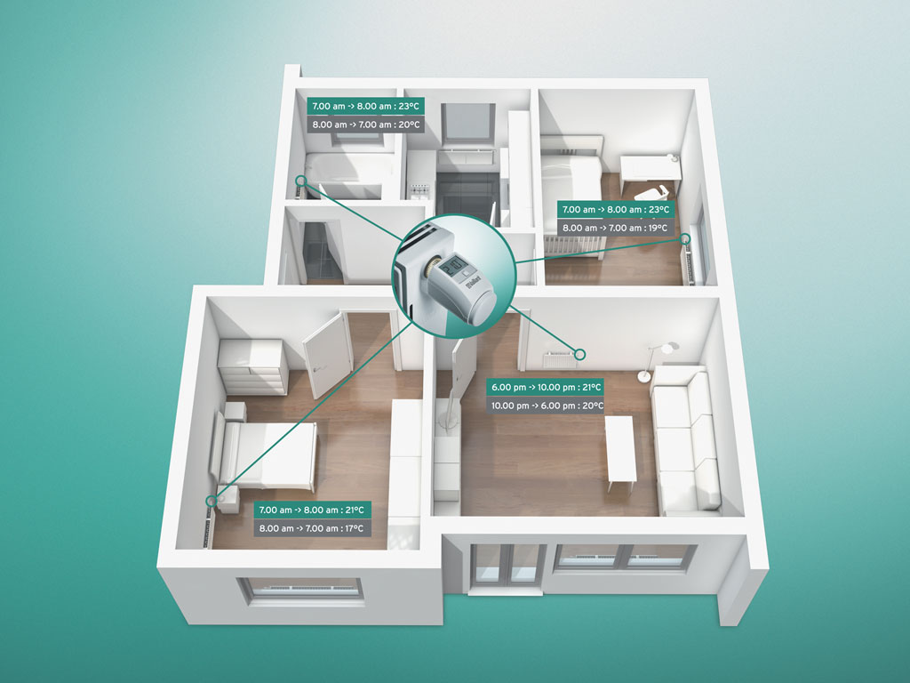Поддержка технологии Vaillant ambiSENSE является оптимальным решением для контроля за температурой в жилых помещениях. Оборудование состоит из терморегулятора, термостата радиаторов и приложения для смартфона Vaillant multiMATIC App. Система позволяет регулировать отопление отдельно в каждом помещении и совместимо с системой "Умный дом"