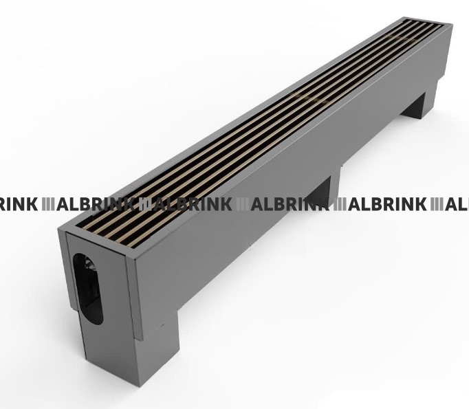 Напольные конвекторы серии НТ-Н состоят из установочного короба, изготовленного из стального оцинкованного листа толщиной 1 мм, нагревательного элемента, оснащенного воздухоотводчиком и декоративной решеткой для выпуска воздуха.