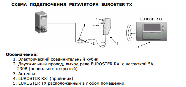 Euroster 2006 TXRX универсальный терморегулятор, применяется для регулировки работы котла Ц.О. и других элементов системы отопления. Управляет электрооборудованием, системой «теплого пола» и системой кондиционирования.