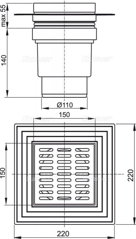 - Корпус сливного трапа с прямым подключением к стоку Ø110 мм
