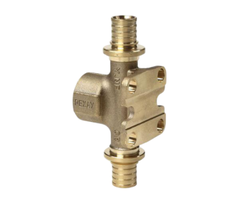 Имеет внутреннюю резьбу на боковом проходе, позволяет сделать переход с аксиального соединения трубы из сшитого полиэтилена на резьбовое соединение. Крепится к стене.