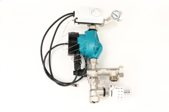 Узел смешения предназначен для понижения температуры в контуре теплого пола путем контролируемого подмеса.