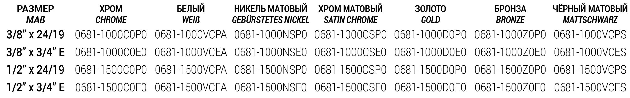 Таблица размеров: